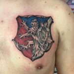 Tetování Českého Lva jako takového je super ale problém je v tom že je Česká vlajka špatně protože vždycky když se Česká vlajka znázorňuje svisle tak červená barva je vždycky na pravé straně a ne na levé jde to jednoduše dohledat že podle Českých národních tradic a symbolů je červená barva vždycky na pravé straně pokud se vlajka znázorňuje svisle