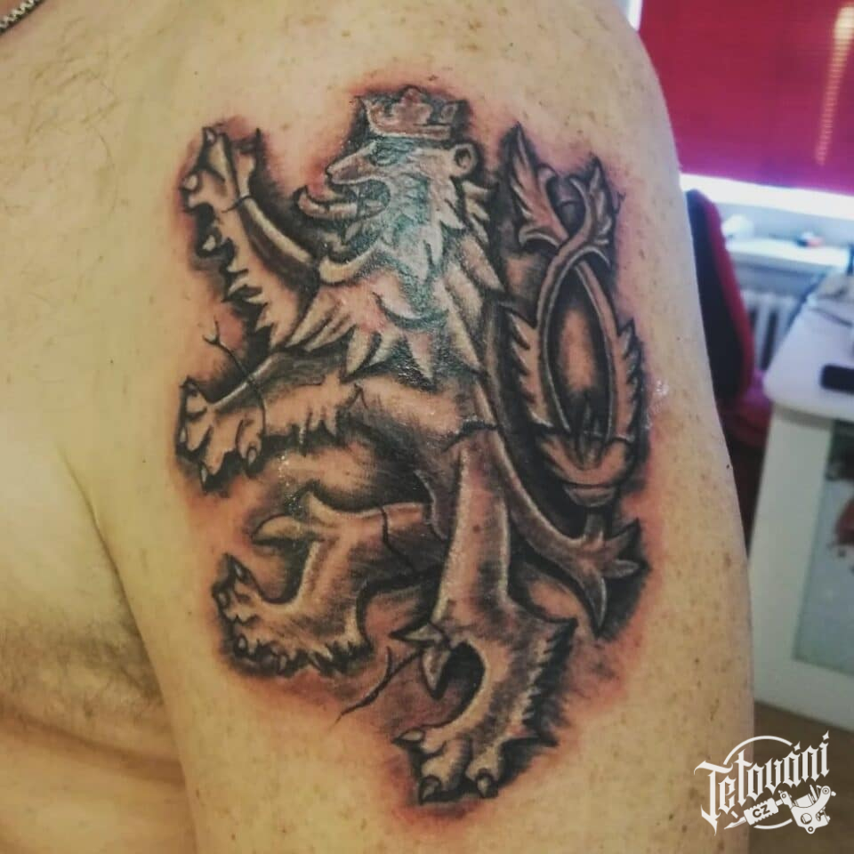 Tetování český lev na rameno