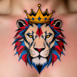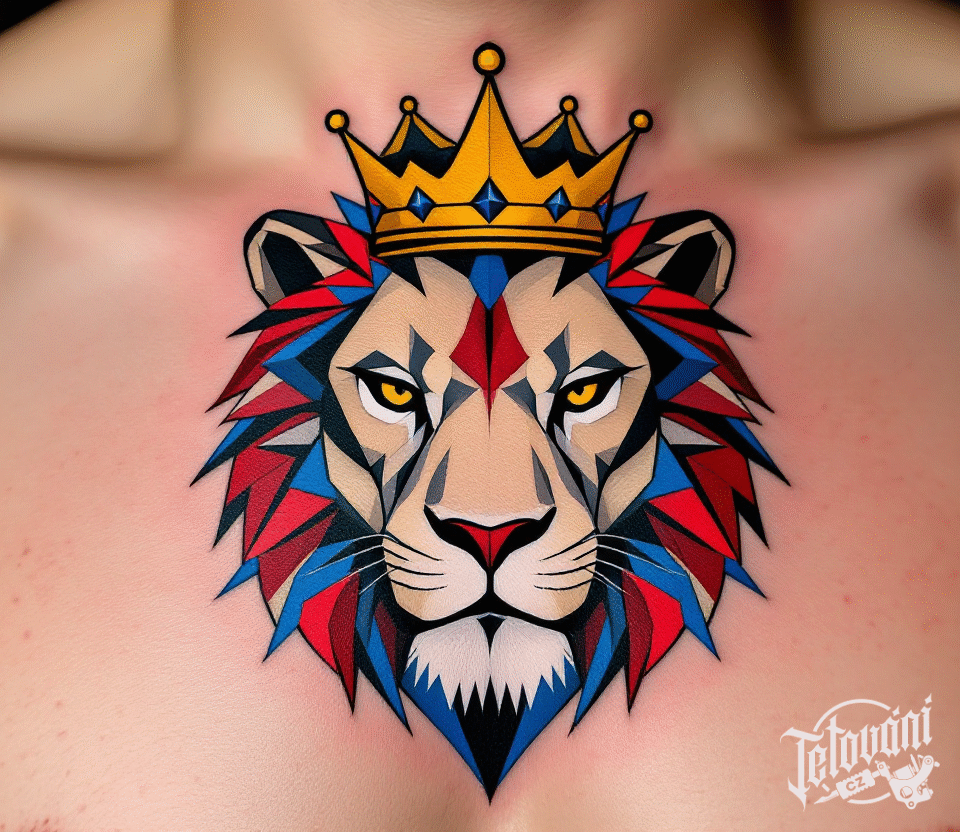 Tetování český lev s korunou na hrudi