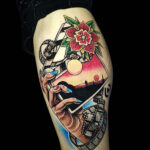 Tetování cestování a květiny na lýtko