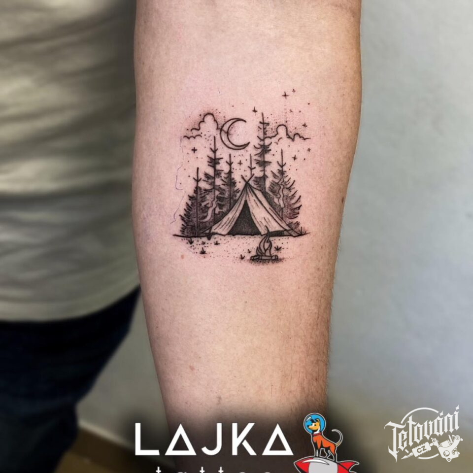 Tetování cestování a příroda na předloktí
