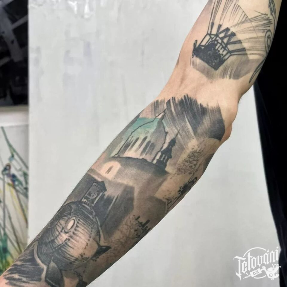 Tetování cestování a příroda na rukávu