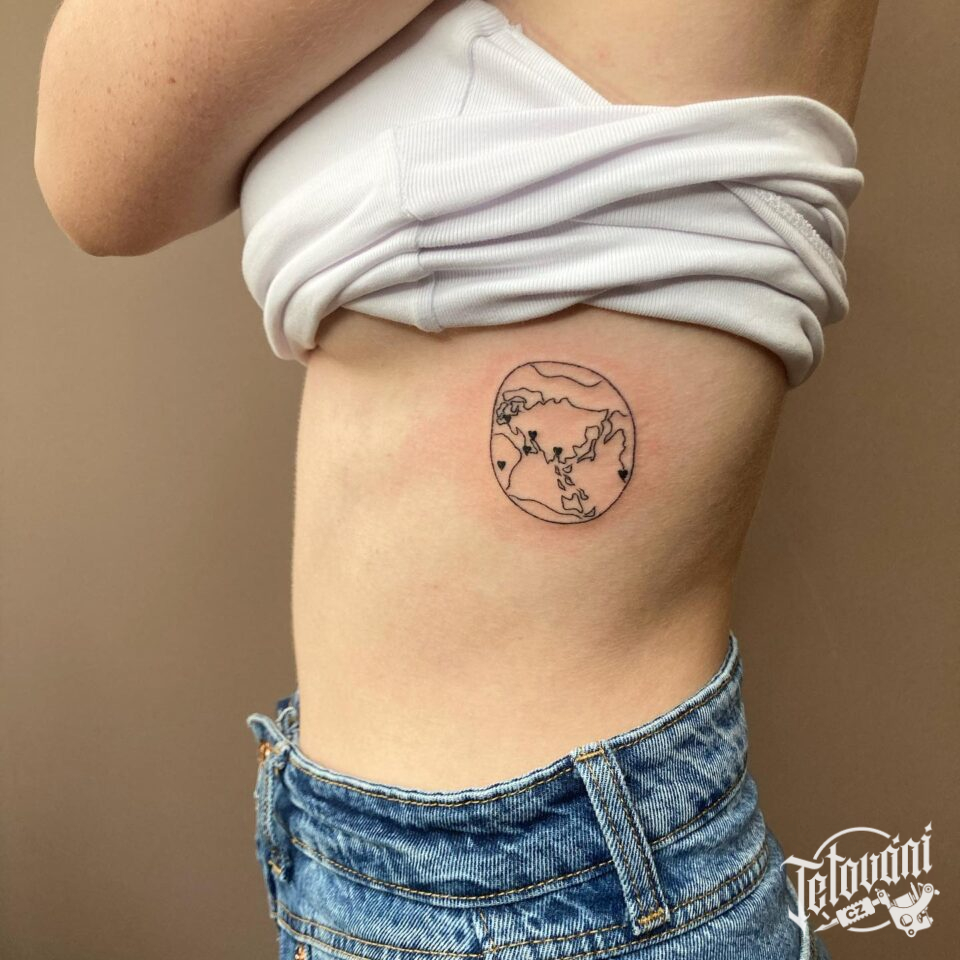 Tetování cestování a srdce na žebra