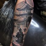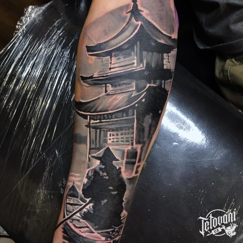 Tetování cestování, japonská architektura na předloktí