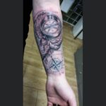Tetování cestování, kompas a lano na předloktí