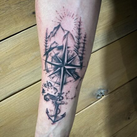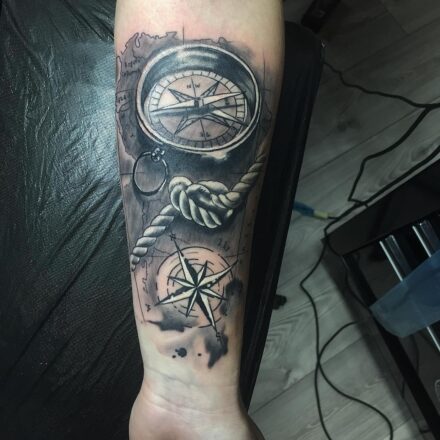 Tetování cestování, kompas na předloktí