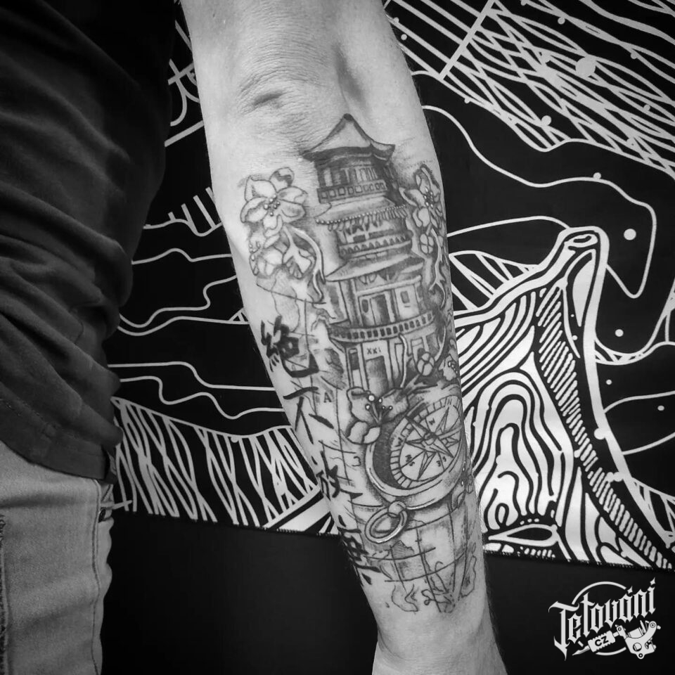 Tetování cestování, kompas na předloktí