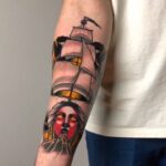 Tetování cestování, loď na předloktí