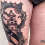 Tetování cestování, maják na stehně