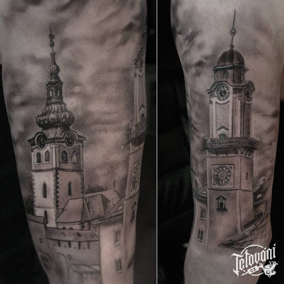 Tetování cestování, město na rameni