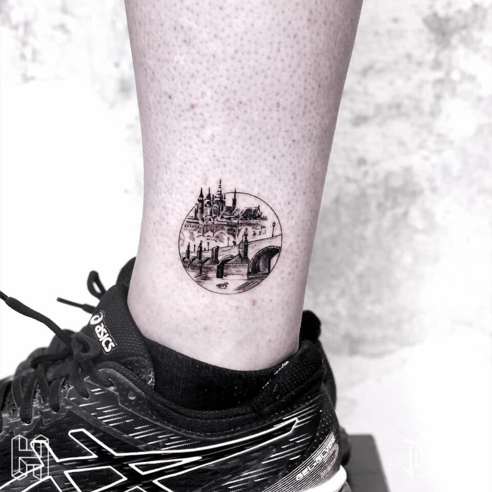 Tetování cestování na kotníku