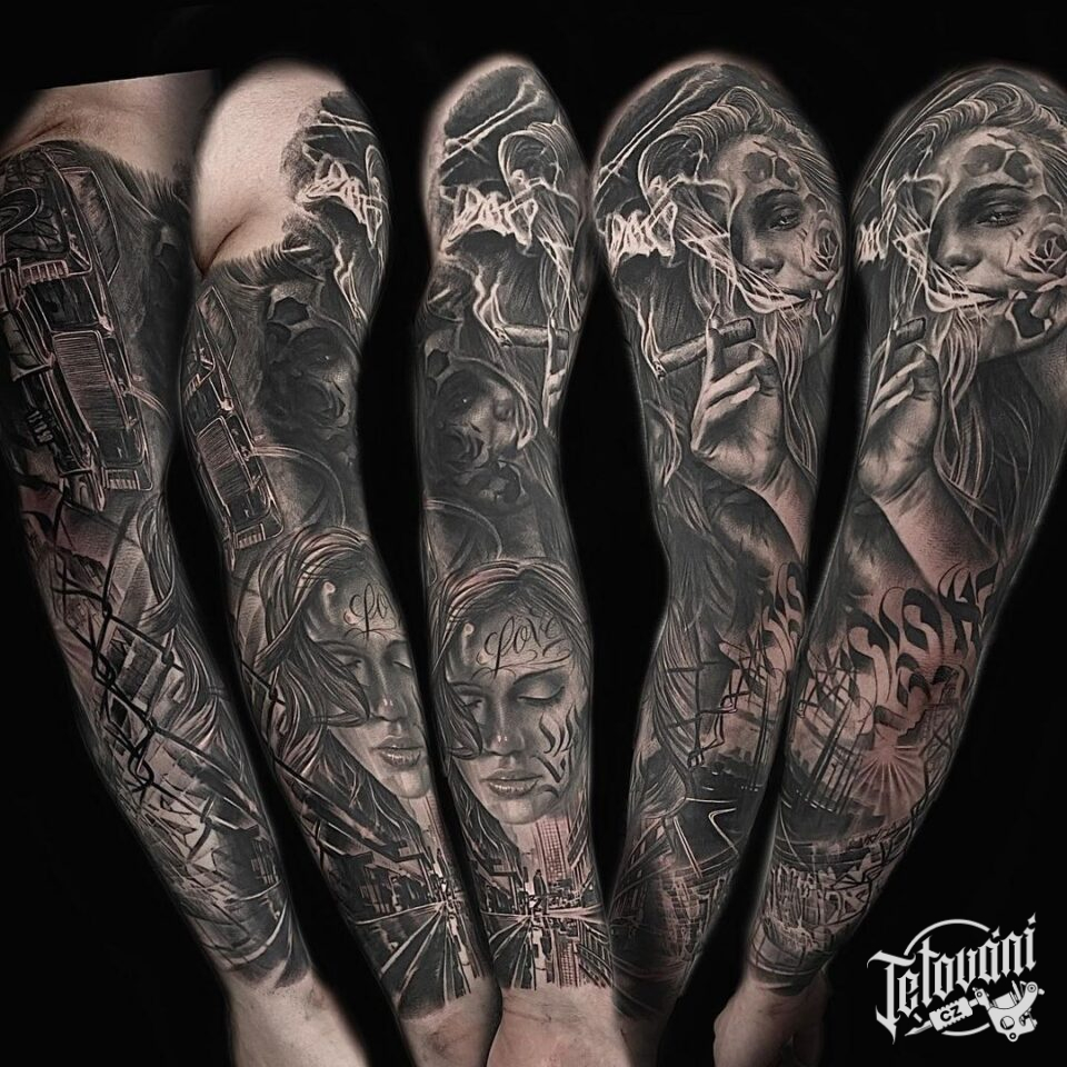 Tetování cestování, portréty, ženy, rukáv