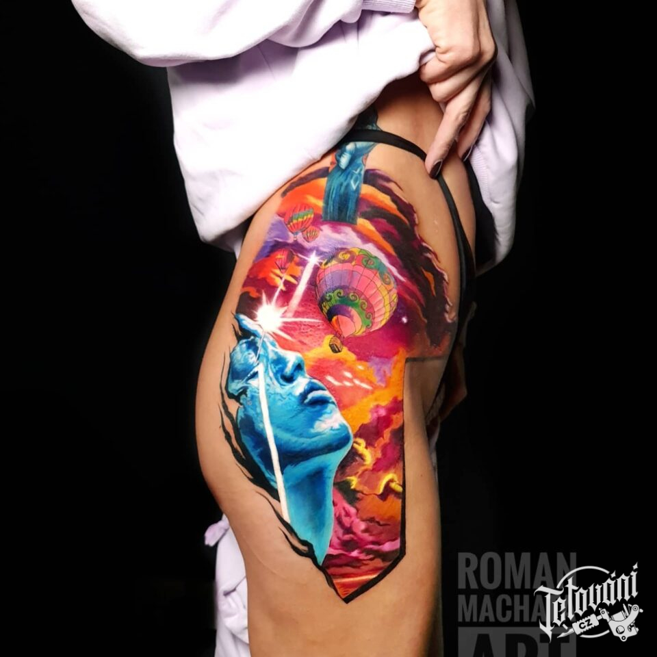 Tetování cestování, příroda a portrét na boku