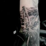 Tetování cestování, příroda, les a cesta na předloktí
