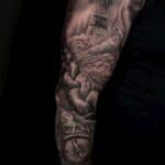 Tetování cestování, řetěz, kompas, maják na ruku