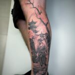 Tetování cestování, samuraj na lýtku