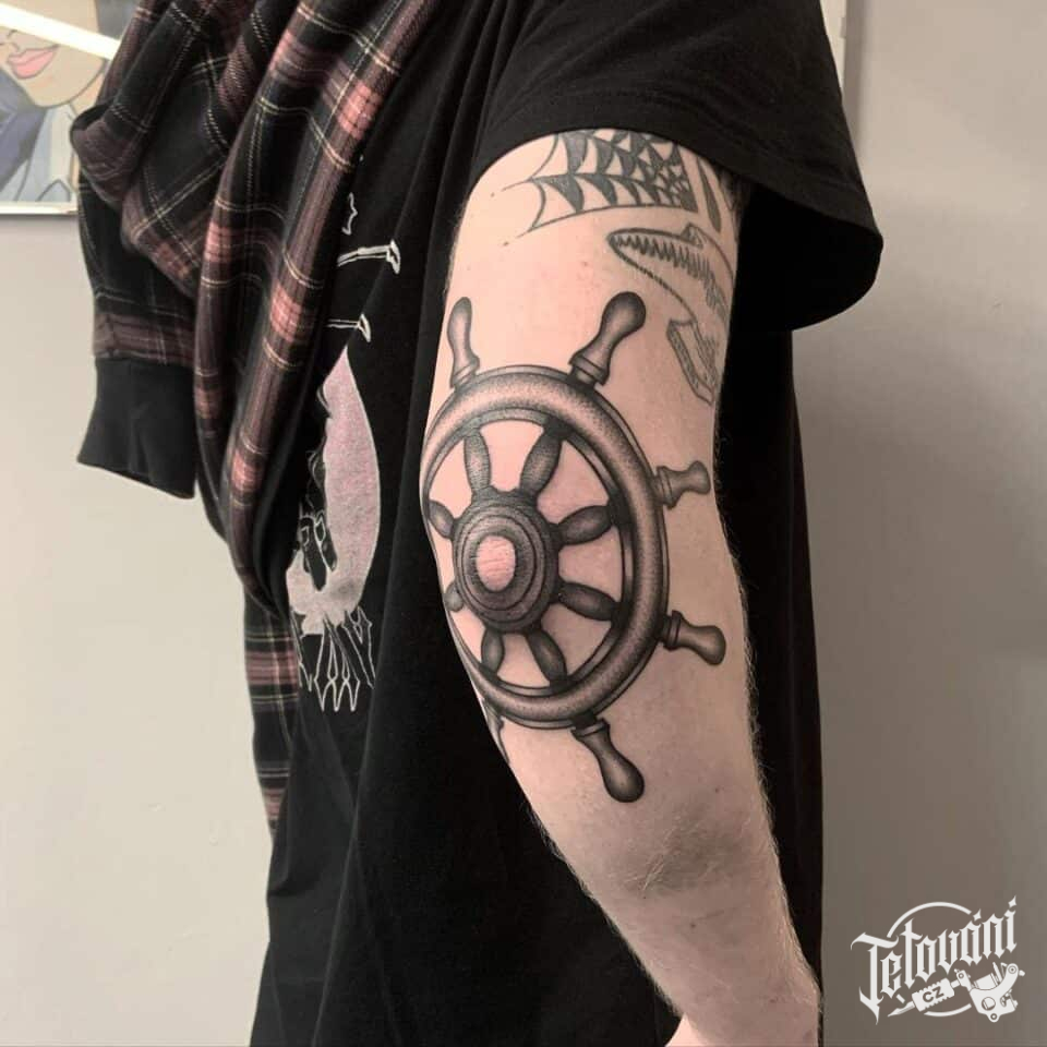 Tetování cestování, symbol síly, kormidlo na loket