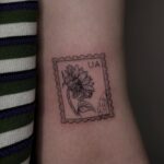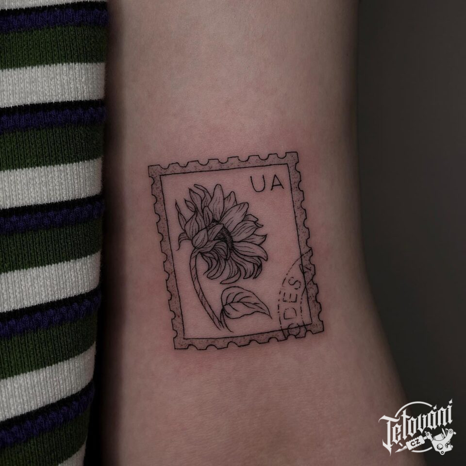 Tetování cestování, známka se slunečnicí na paži