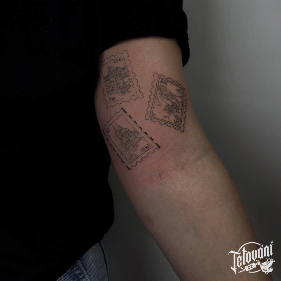 Tetování cestování, známky na paži