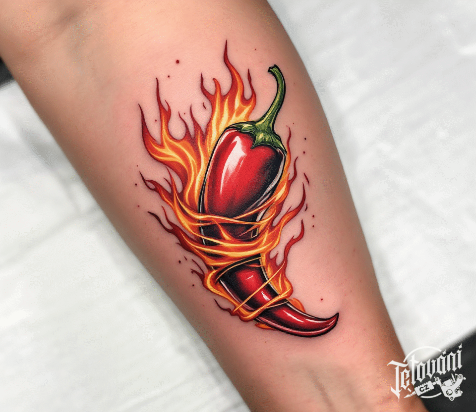 Tetování chilli paprička na předloktí