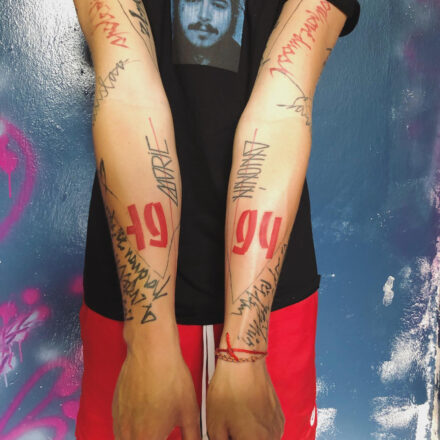 Tetování čísla na lýtku