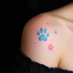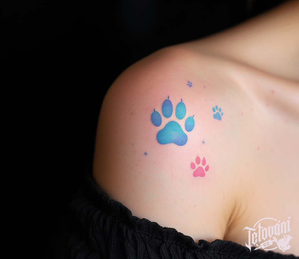 Tetování čtyři kočičí tlapky na rameni