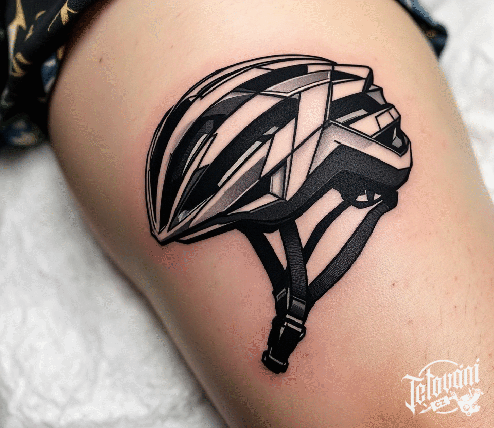 Tetování cyklo sport, helma na stehně