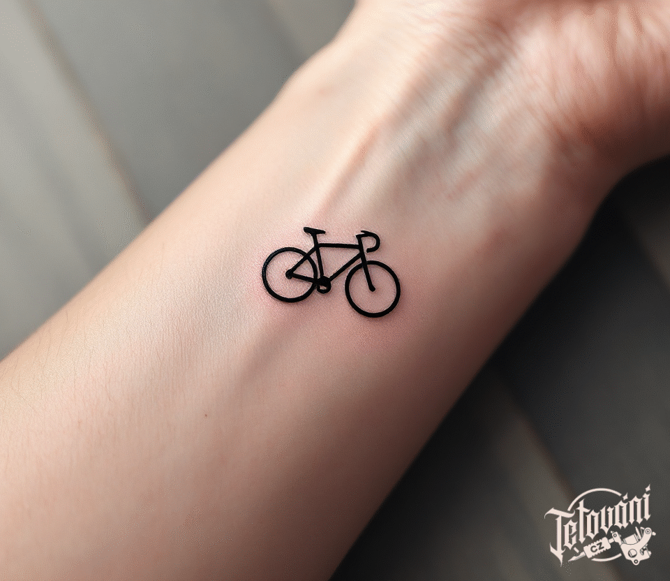 Tetování cyklo sport, minimalistické kolo na předloktí