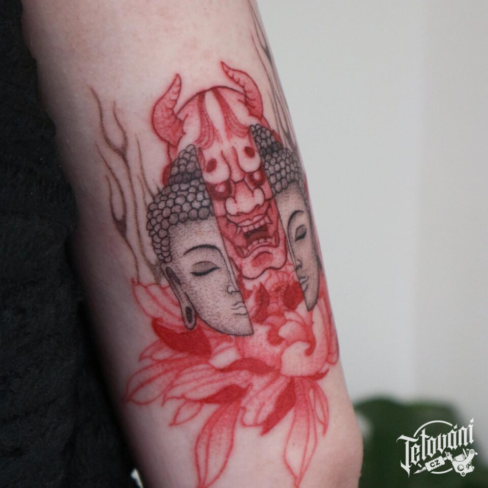 Tetování ďábel a Buddha na ruce