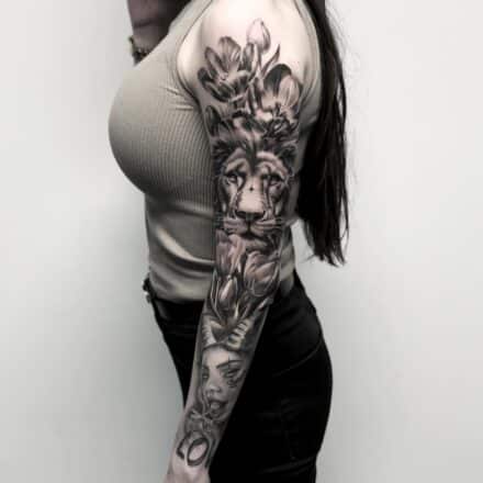 Tetování ďábel a lev na předloktí