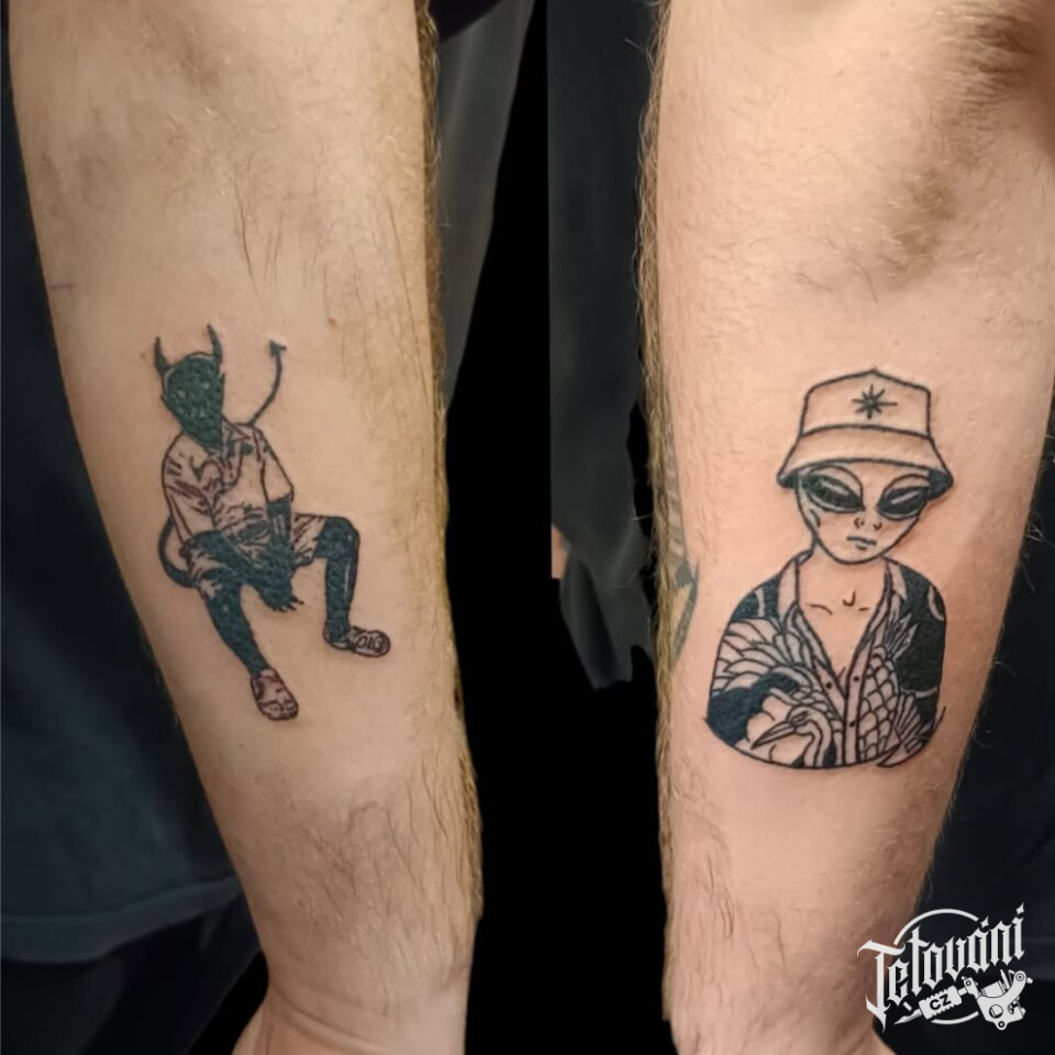 Tetování ďábel a ufo na předloktí