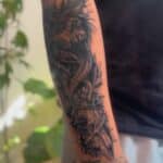 Tetování ďábel, květiny na předloktí