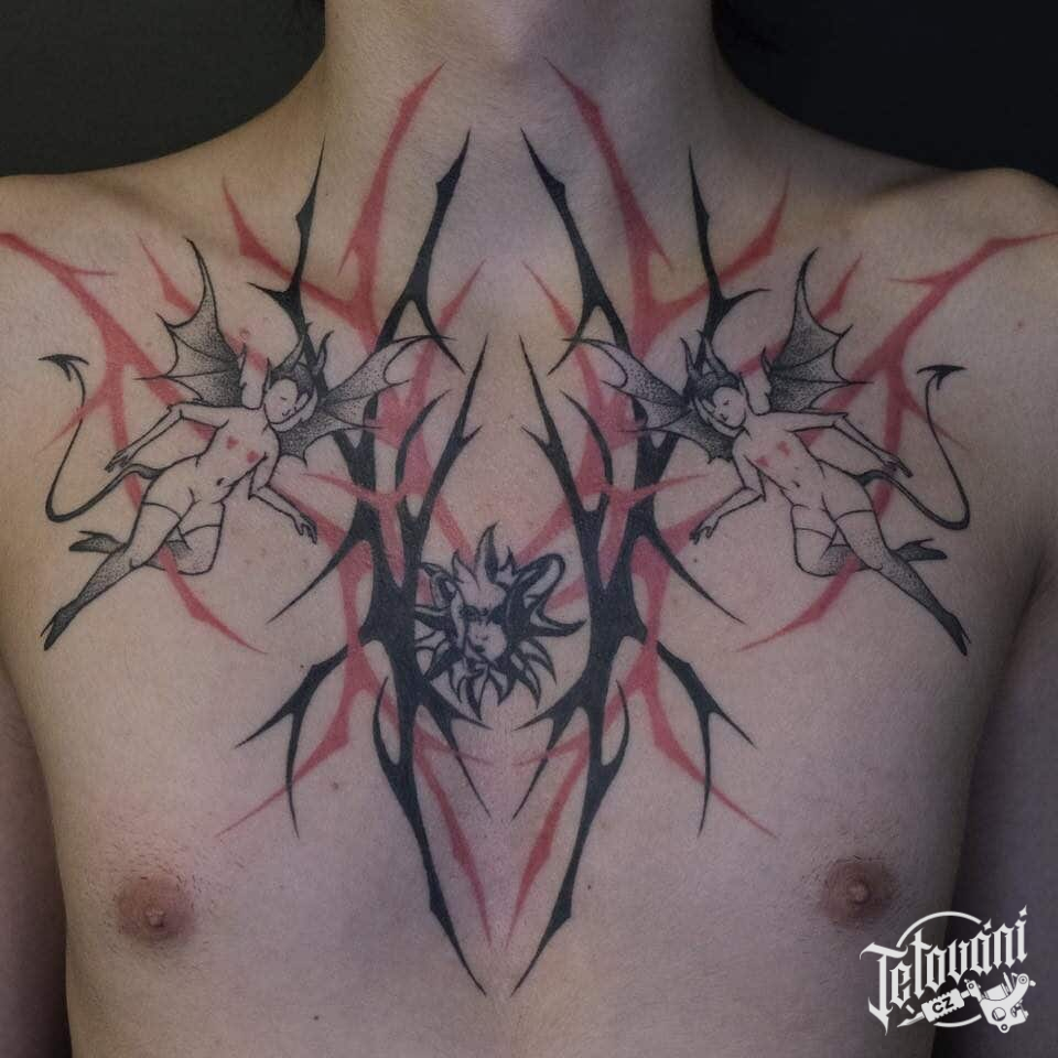 Tetování ďábel na hrudi