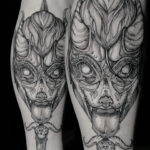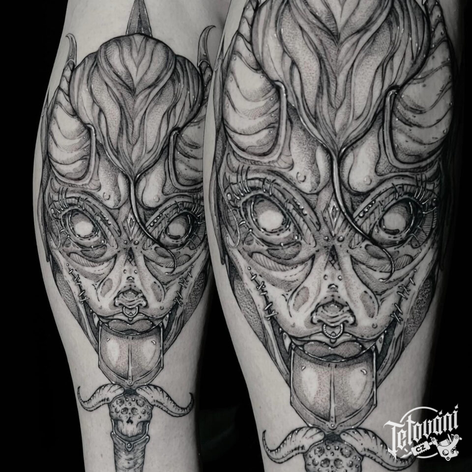 Tetování ďábel na lýtku