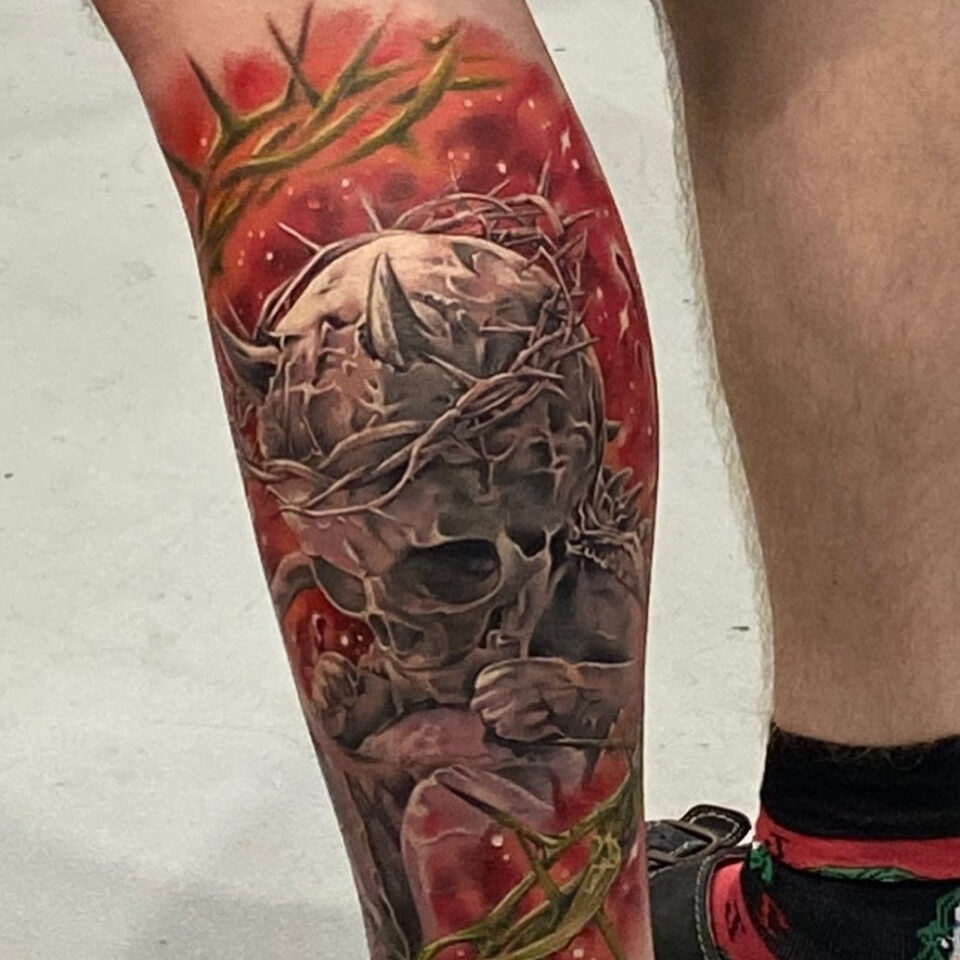 Tetování ďábel na lýtku
