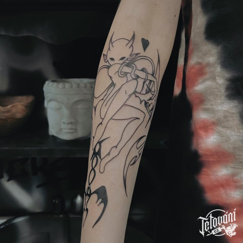 Tetování ďábel na předloktí