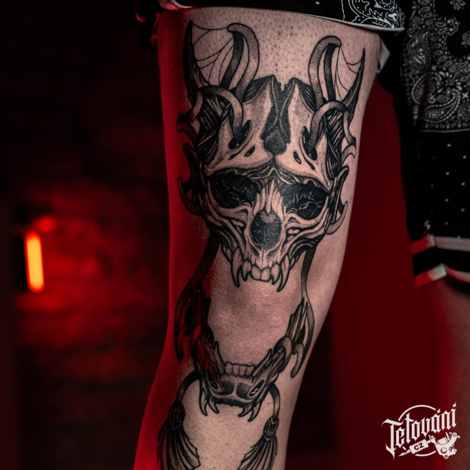 Tetování ďábel na stehno