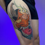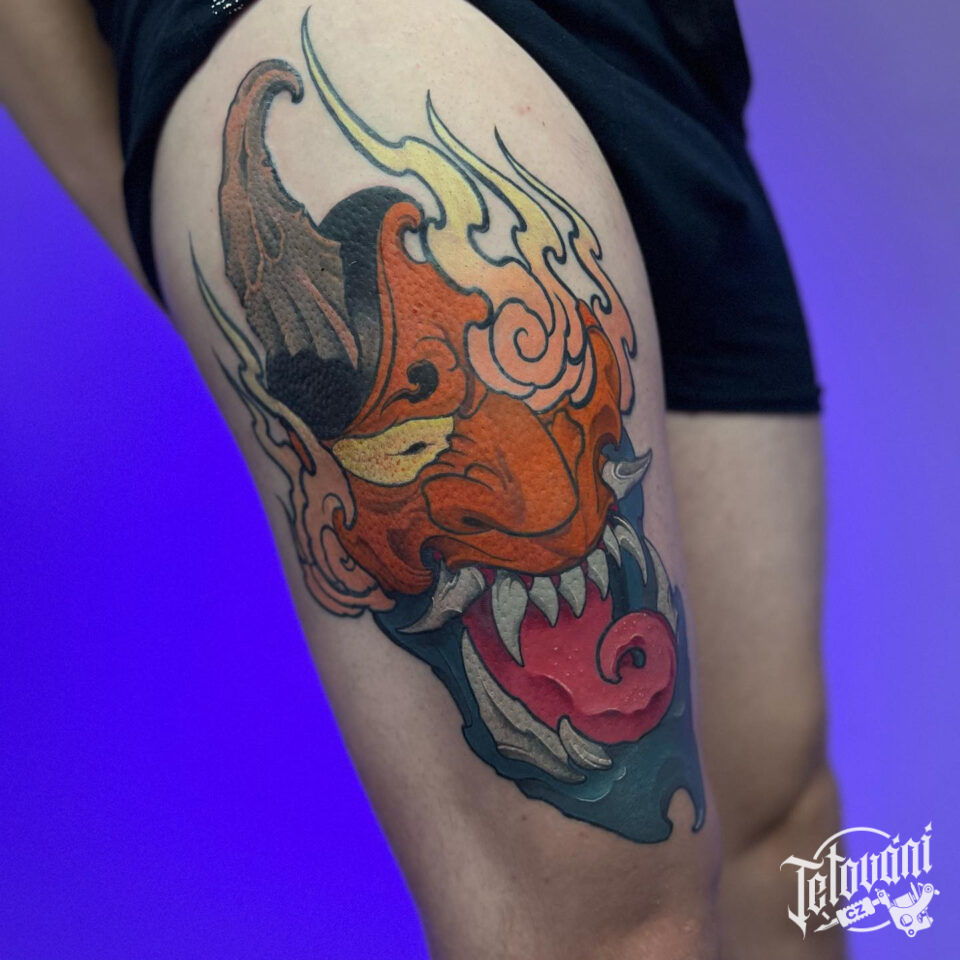 Tetování ďábel na stehno