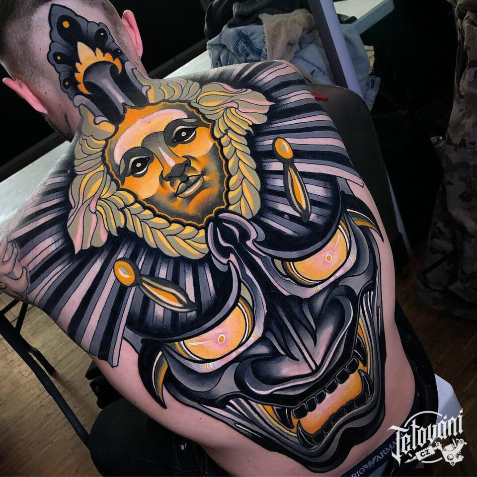Tetování mýtické bytosti na zádech