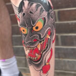 Tetování ďábelská maska hannya na holeni