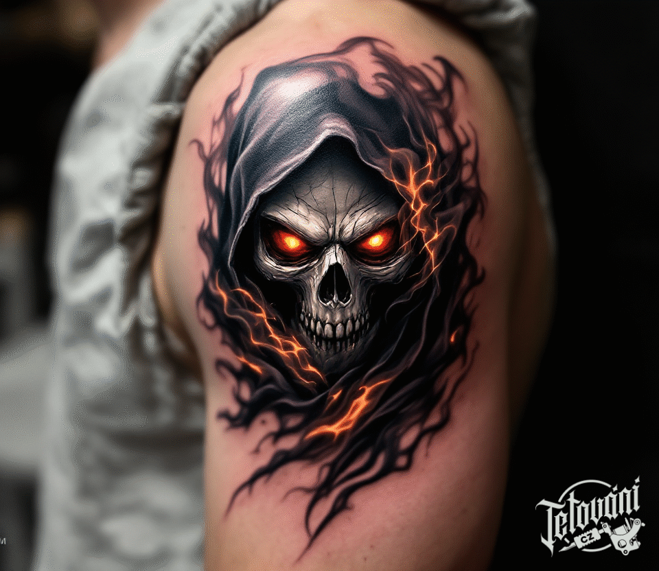 Tetování ďábelská smrtka na rameni
