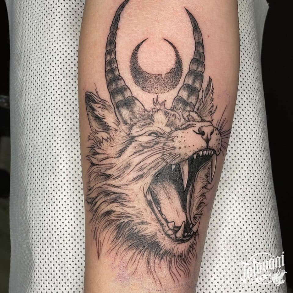 Tetování ďábelské zvíře na předloktí