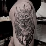 Tetování ďábla na boku stehna