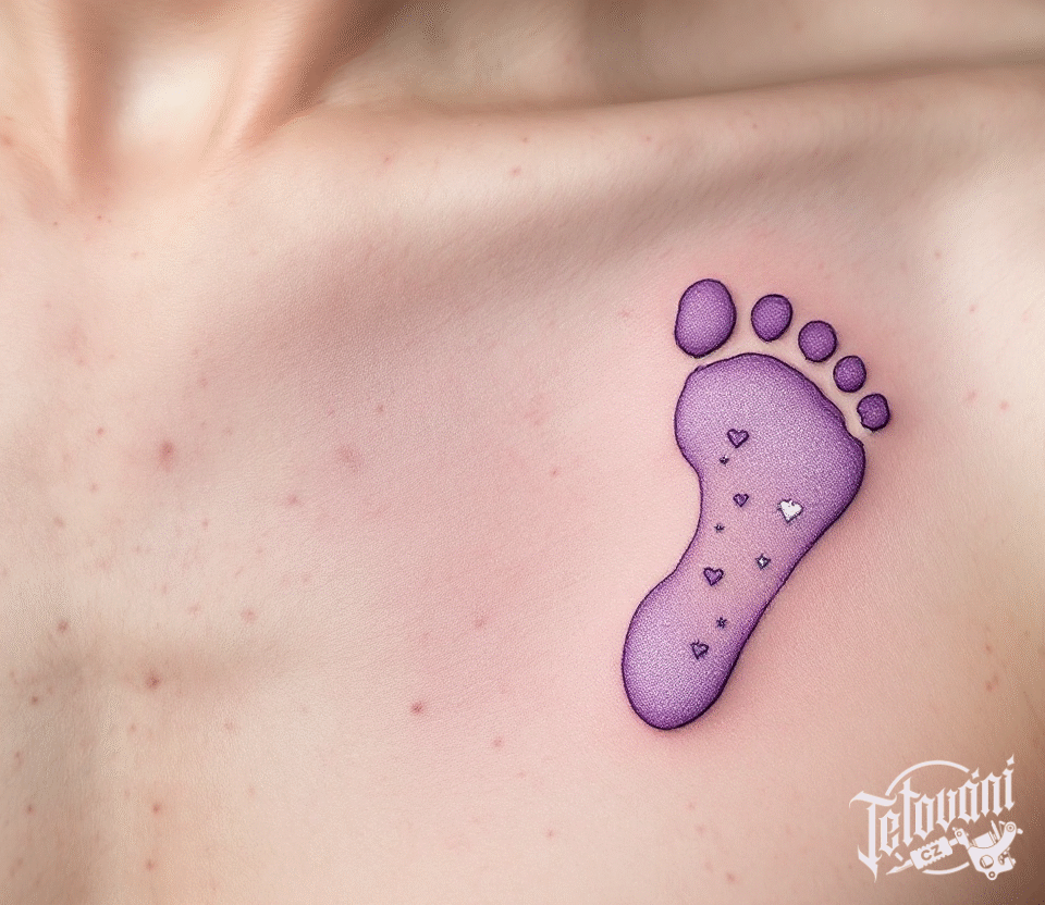 Tetování dětská nožička pod klíční kostí