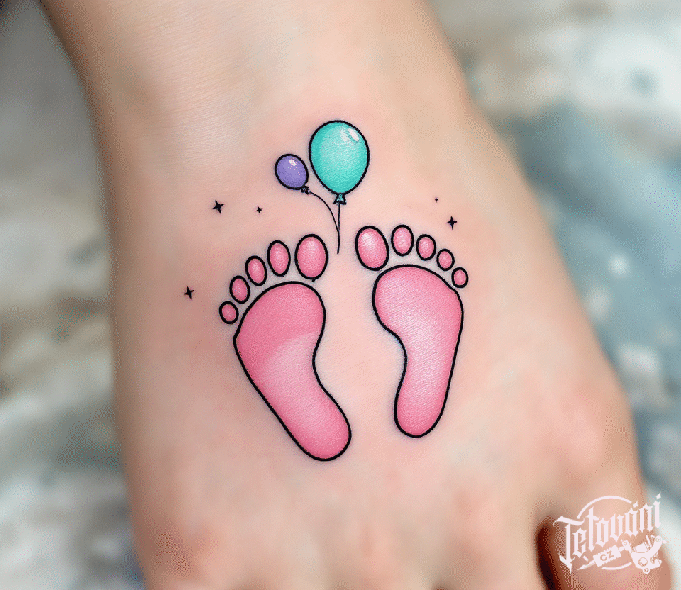 Tetování dětské nožičky na hřbetu ruky