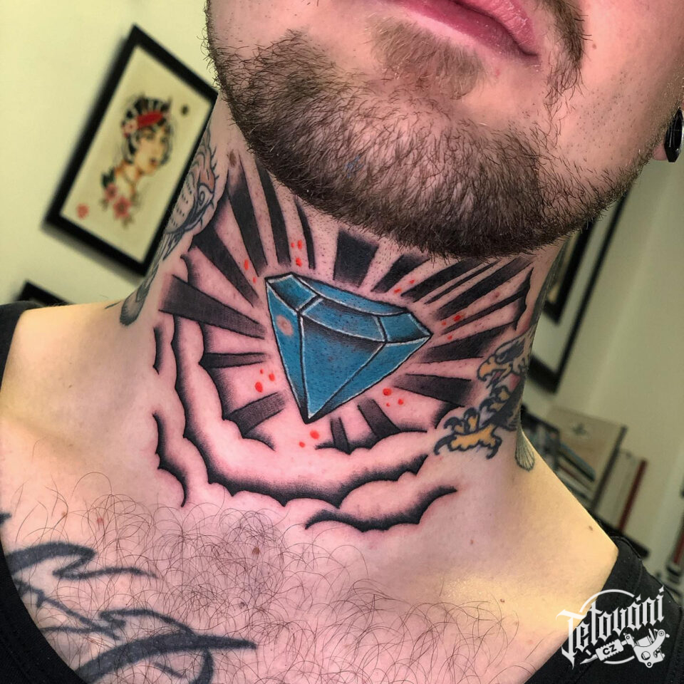 Tetování diamant na krku