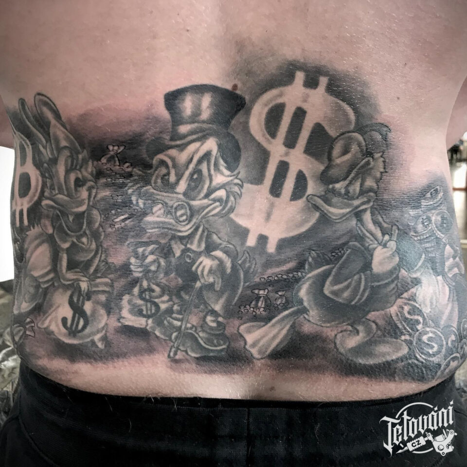 Tetování Disney postavičky z filmů a pohádek na zádech