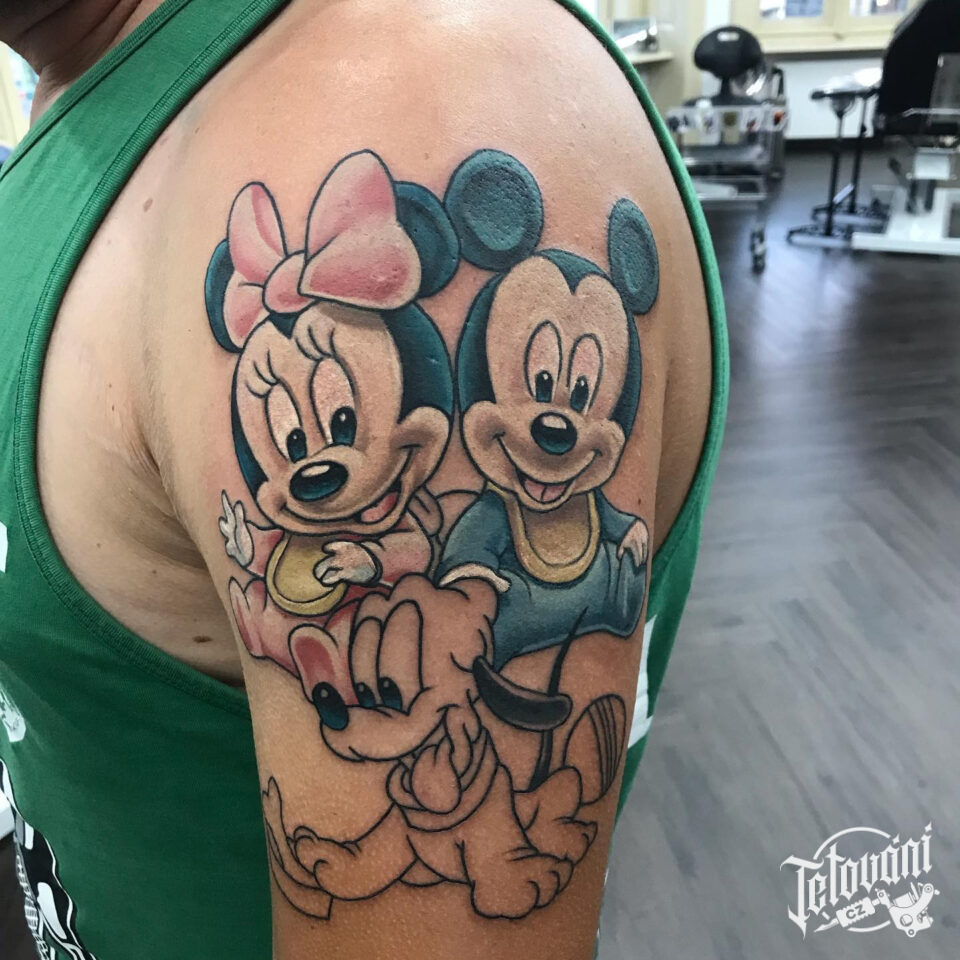 Tetování Disney z filmů a pohádek Mickey mouse na rameni