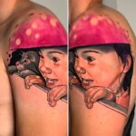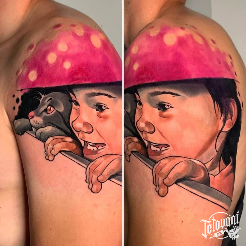 Tetování dítě a kočka na rameno