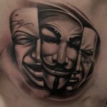 Tetování divadelní masky na hrudi